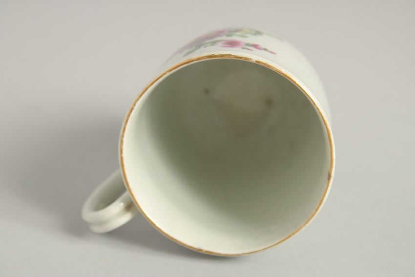 TWO 18TH CENTURY WORCESTER COFFEE CUPS, one painted with a large bouquet of flowers. scattered with sprigs verso, also an unusual coffee cup enamelled with abstract flowers.