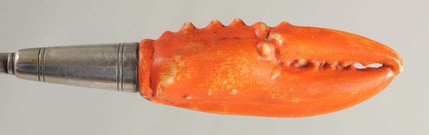 A PAIR OF SALAD SERVERS carved with lobster claw handles.