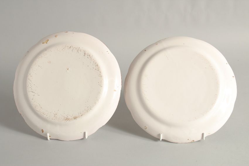 A PAIR OF CONTINENTAL PLATES painted with flowers in a basket