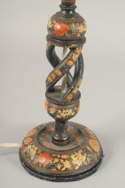 A KASHMIRI LAMP, together with a small rectangular lidded box painted with a polo scene, (2).