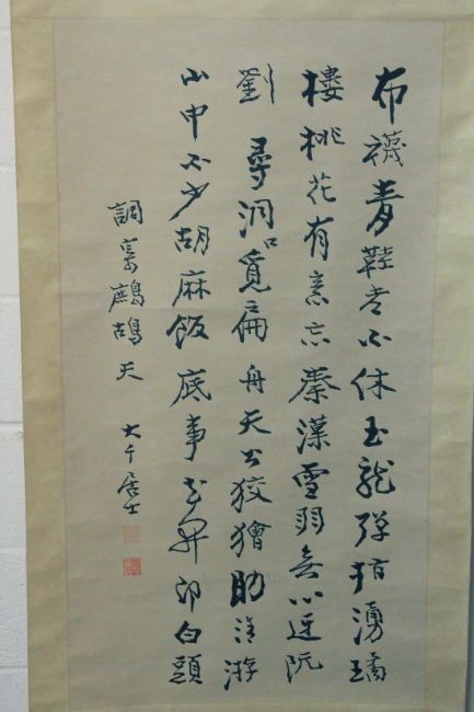 IN THE MANNER OF ZHANG DA QIN: A LARGE CHINESE CALLIGRAPHIC SCROLL, with two red seal marks, image 120cm x 64cm.