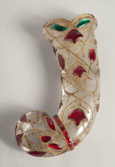 A MUGHAL STYLE ROCK CRYSTAL DAGGER HANDLE, 14cm at widest point.