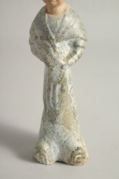 AN EARLY CHINESE PART-GLAZED TERRACOTTA FIGURE, 26cm high.