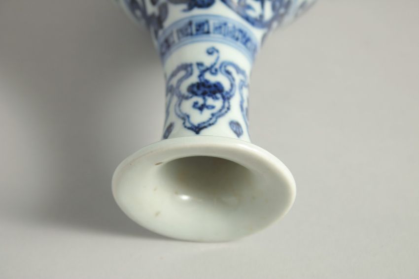 A CHINESE BLUE AND WHITE PORCELAIN YUHUCHUNPING VASE, painted with large flower heads and scrolling vine. Six-character mark to base. 24cm high