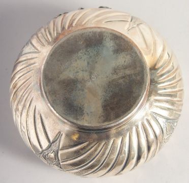 A TURKISH SILVER CIRCULAR BOWL, with repousse decoration and applied flower head mounts, stamped 900, 18cm diameter, 330g.