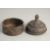 A TIBETAN SILVER INLAID CIRCULAR LIDDED STEEL BOX, with relief decoration of dragons and curling flora, 11.5cm.