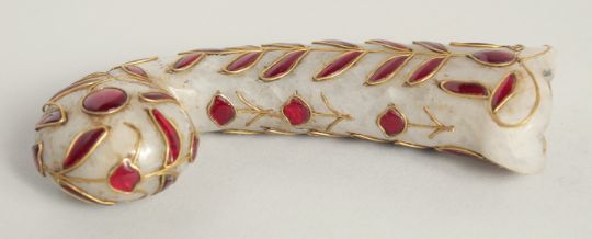 A MUGHAL STYLE HARDSTONE DAGGER HANDLE, 14cm at widest point.