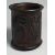 A LARGE CHINESE CARVED HARDWOOD BRUSH POT, carved with a landscape scene with buildings, mountains and trees, raised on three feet, 18cm high.