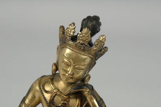 A THAI GILT BRONZE FIGURE OF A SEATED DEITY, 19.5cm high.