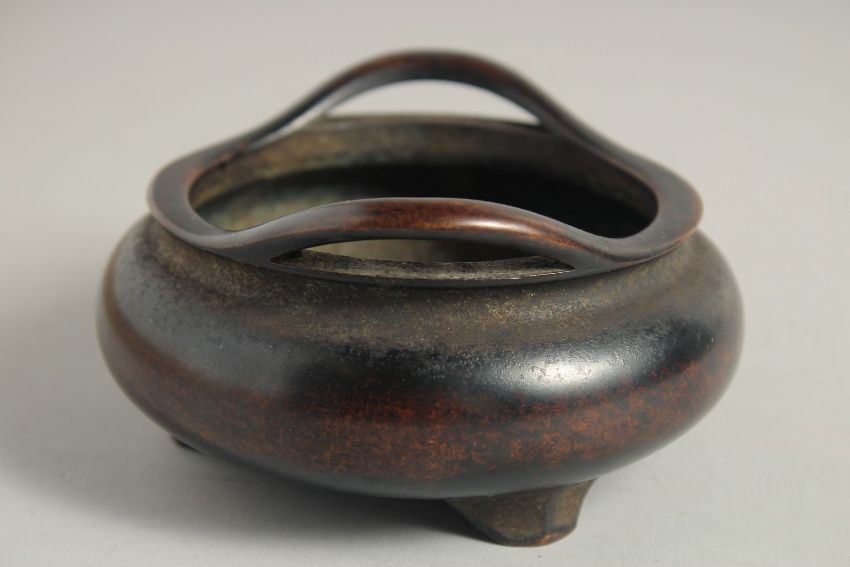 A GOOD CHINESE BRONZE TRIPOD CENSER, the base with six-character mark, 11.5cm diameter.