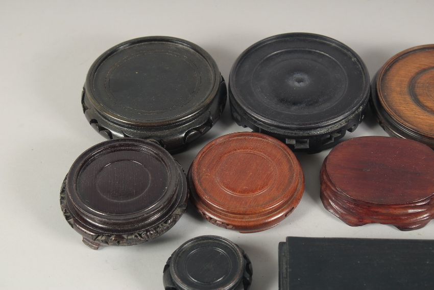 A GOOD COLLECTION OF CHINESE HARDWOOD STANDS, various sizes, (12).