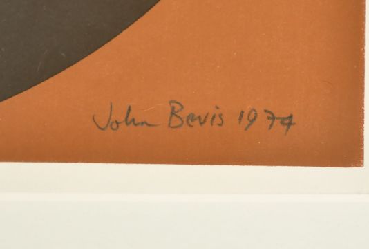 John Bevis (20th Century) An abstract with circles, screen print, numbered 11/25, signed and dated 1974, 19.5" x 13.25", (49.5x33.5cm).
