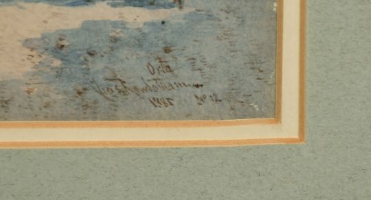 Charles Rowbotham (1823-1875) Traders conversing on a coastal trail with boats and buildings, watercolour, indistinctly signed, dated 1885, 9.5" x 7.5", (24x19cm).