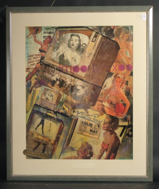 Pietro Psaier (1936-2004), 'Tillie and Mac', silkscreen print and mixed media on fruitwood, signed and with Psaier studio stamp, 27" x 22" (69 x 56cm).