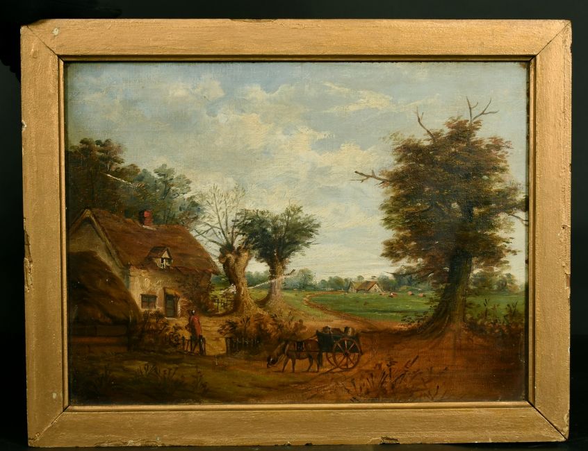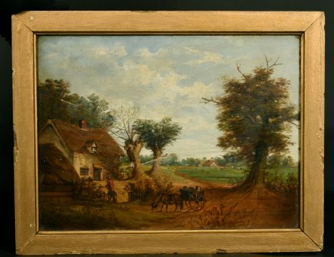 19th Century British School, A landscape depicting a farm scene, oil on canvas, 12" x 16", (30.5x41cm).