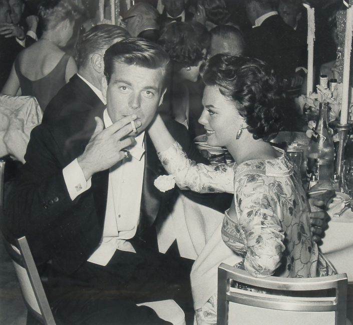 Frank Worth (1923-2000) American, Natalie Wood and Robert Wagner at an Oscars Dinner in 1959, silver gelatin print, with Estate Stamp and numbered 55/195, 14” x 15.25” (35.5 x 39cm).