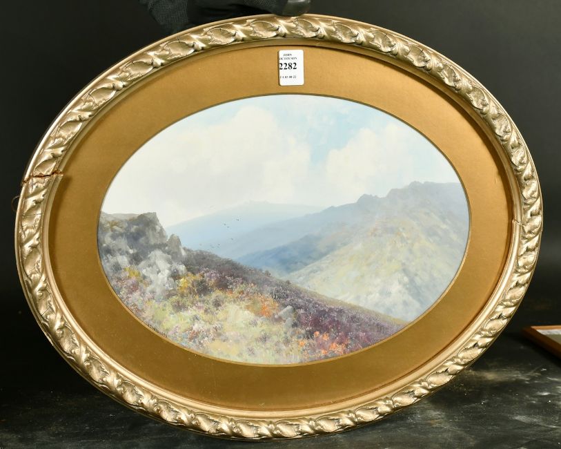 Frederick John Widgery (1861-1942) A sloping mountainous landscape with heather in flower, gouache, signed, 9.75" x 13.75", ( 25x35cm) oval.