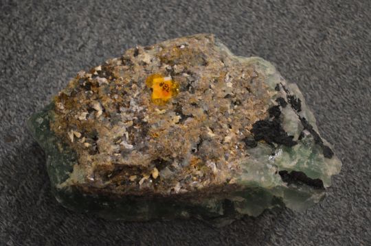 A green crystal mineral sample.