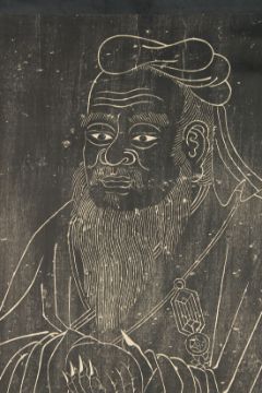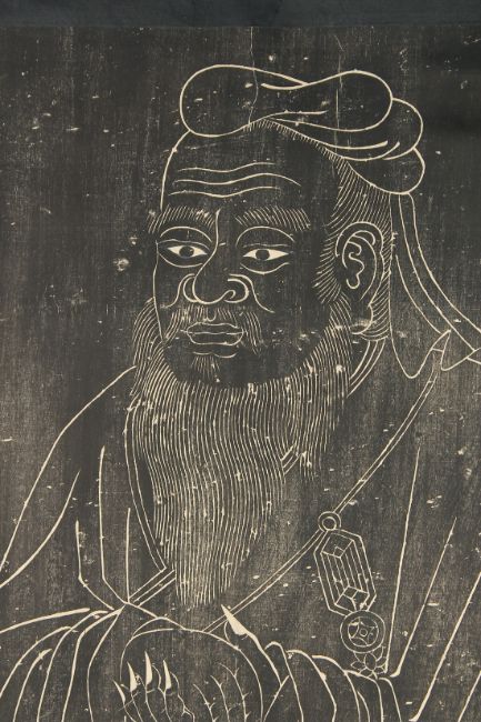 TWO CHINESE SCROLL PICTURES ON PAPER, both depicting a sage-like figure, together with another scroll depicting a mountainous scene and an unusual lithograph print on paper, (scrolls with wear), (4).
