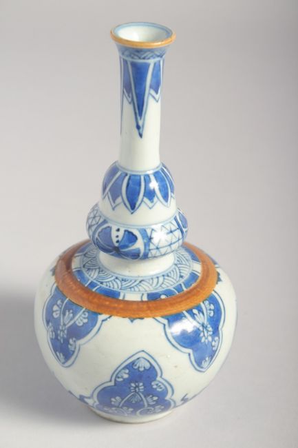 TWO SMALL CHINESE BLUE AND WHITE PORCELAIN VASES, each 17cm high.