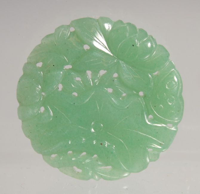 A SMALL CHINESE CARVED AND PIERCED JADE PENDANT, 3cm.