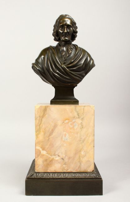 A VERY GOOD 19TH CENTURY BRONZE OF A MAN.