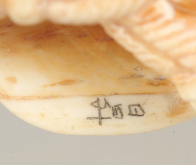 A CARVED BONE FACES INRO.