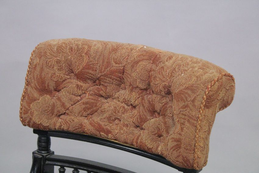 AN AESTHETIC MAHOGANY ARMCHAIR with black frame.