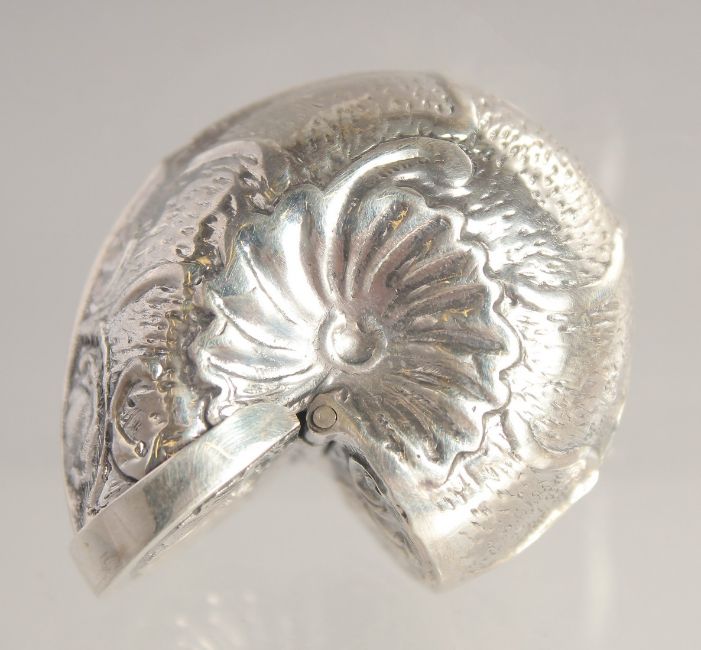 A SILVER SHELL SNUFF BOX.