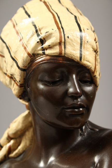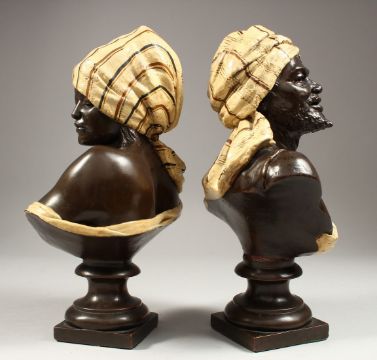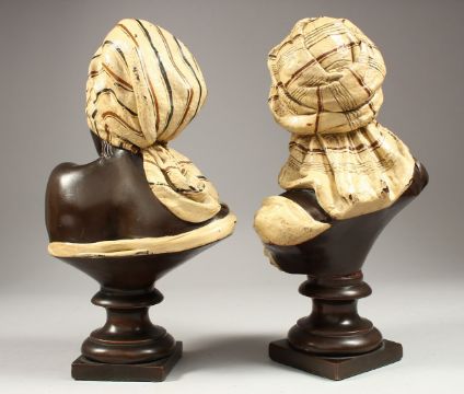 A VERY GOOD PAIR OF NORTH AFRICAN POTTERY BUSTS of a man and a young lady