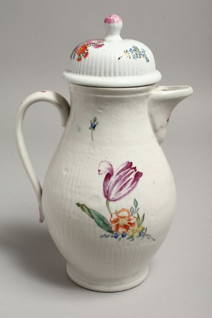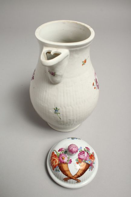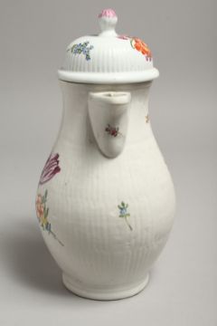 A GOOD COFFEE POT AND COVER painted with flowers.