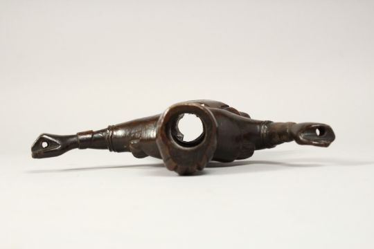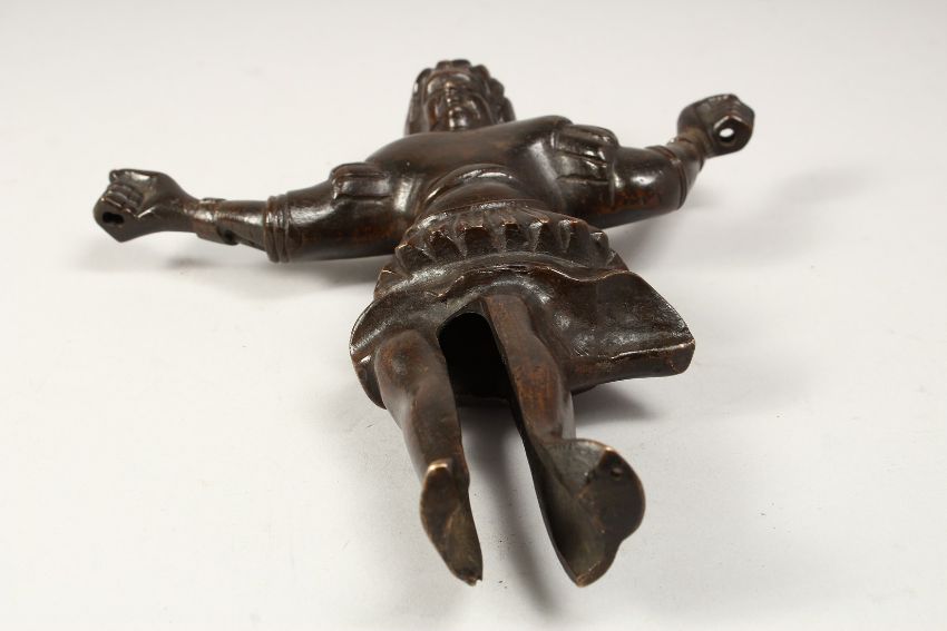 A POSSIBLY 16TH CENTURY BRONZE OF A MAN ARMS OUTSTRETCHED.