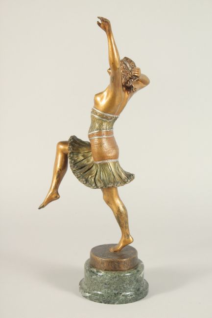 A BRONZE DANCER. Signed, on a circular marble base.