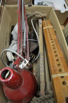 Miscellaneous collectables to include old tennis rackets, brass spark guard, gramophone horn etc.
