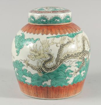 A CHINESE TRICOLOUR PORCELAIN JAR AND COVER, 25cm high.