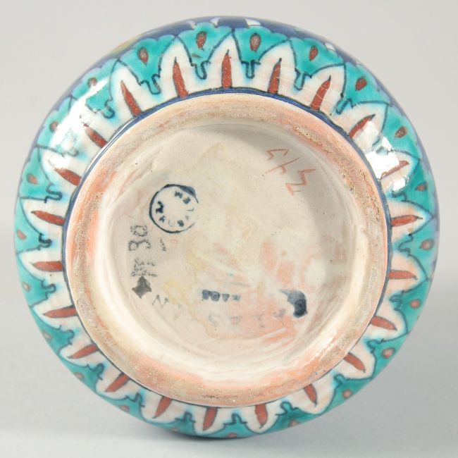 TWO IZNIK STYLE PALESTINIAN JERUSALEM VASES, 13.5cm and 11.5cm high.