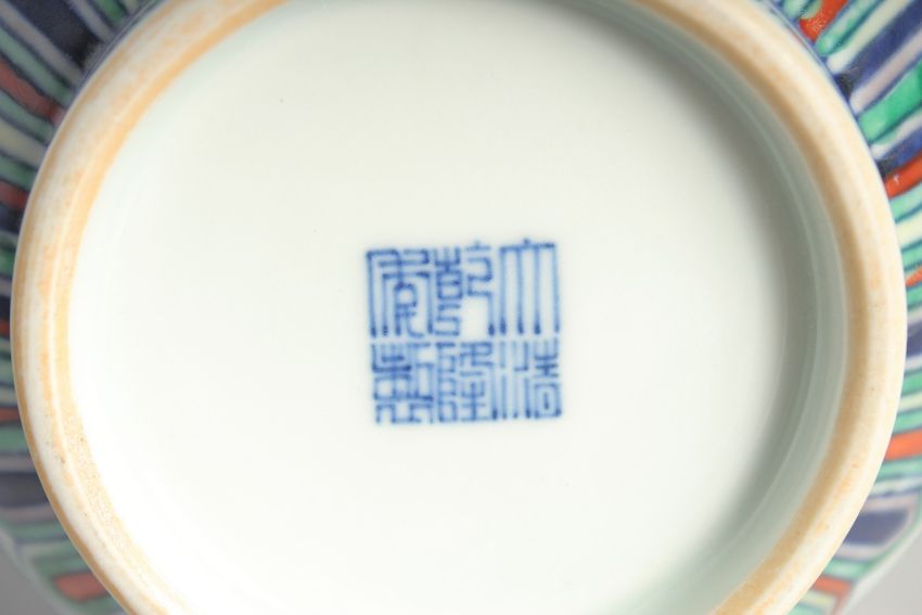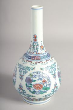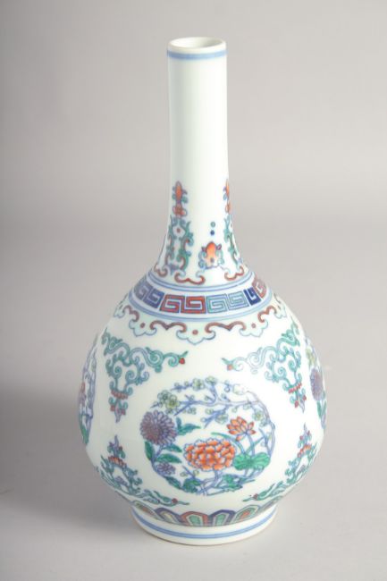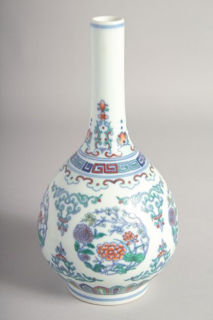 A CHINESE DOUCAI PORCELAIN BOTTLE VASE, six-character mark to base, 26.5cm high.