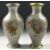 A PAIR OF CHINESE GLASS CLOISONNE VASES, decorated with colourful glass and wirework flowers with bird and butterfly on a scale pattern ground, the bases with blue enamel, 20.5cm high.
