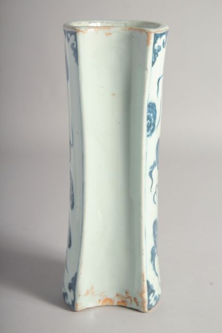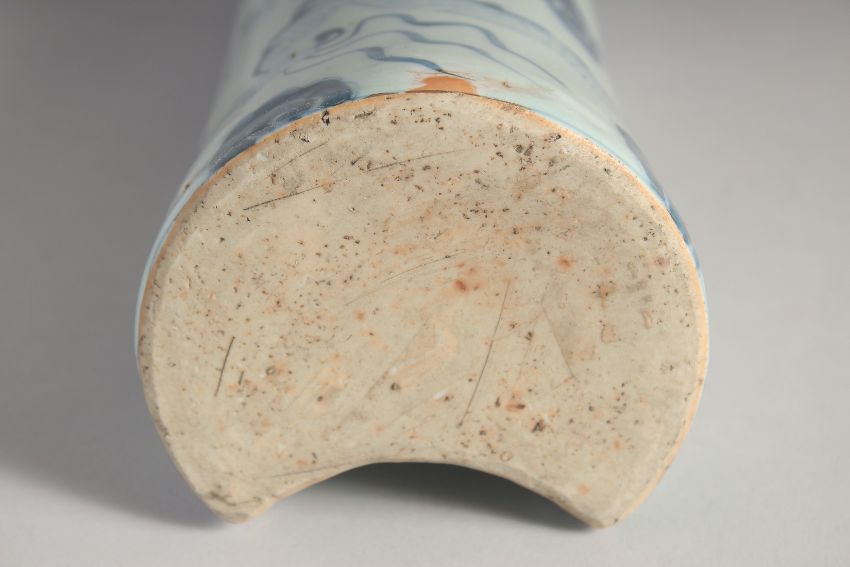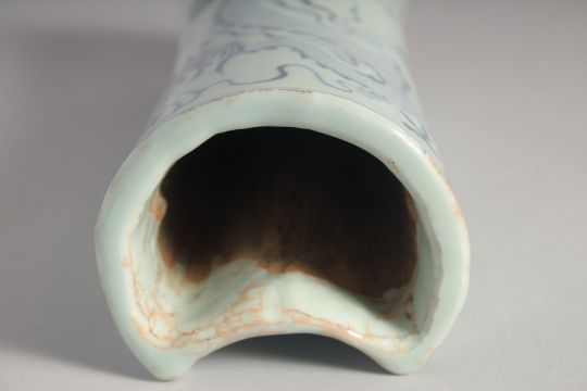A CHINESE BLUE AND WHITE PORCELAIN PILLOW, in Yuan style, 29cm long.