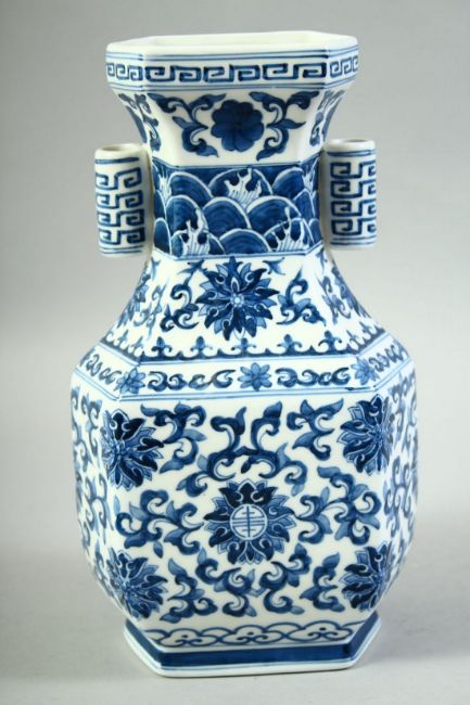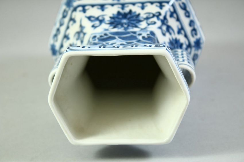 A CONTEMPORARY CHINESE BLUE AND WHITE PORCELAIN TULIP VASE AND STAND, painted with foliate design, in a fitted box.