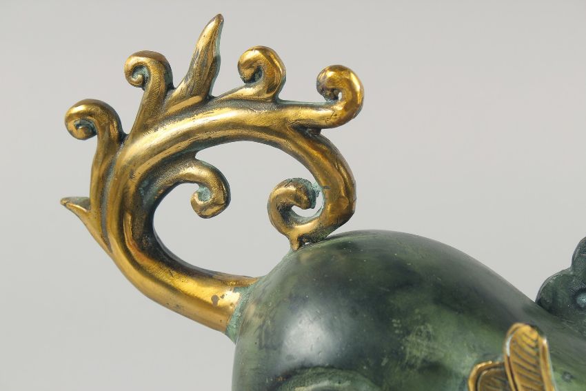 A LARGE METAL FIGURE OF A MYTHOLOGICAL BEAST, 35cm long.