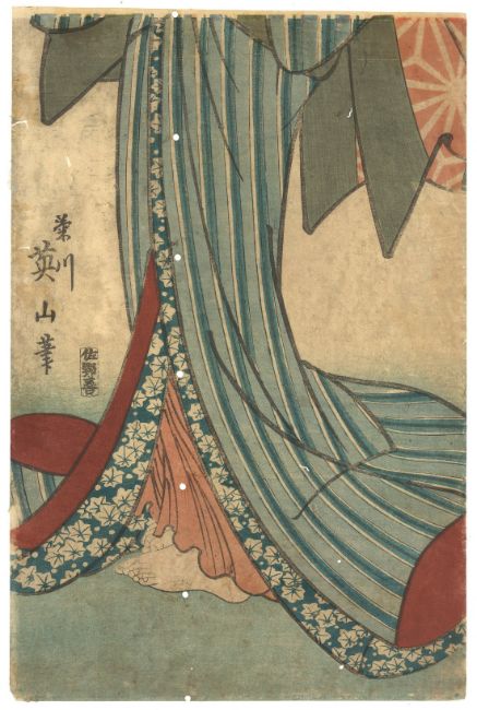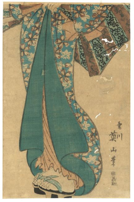 KIKUGAWA EIZAN (1787-1867): FOUR MID 19TH CENTURY JAPANESE WOODBLOCK PRINTS depicting two female figures (each in two sections), (4).
