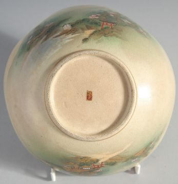 THREE JAPANESE SATSUMA BOWLS, the largest decorated with landscape scenes, character mark to base, 16cm diameter, the smaller bowls painted with flora, each bearing a character mark, (3).