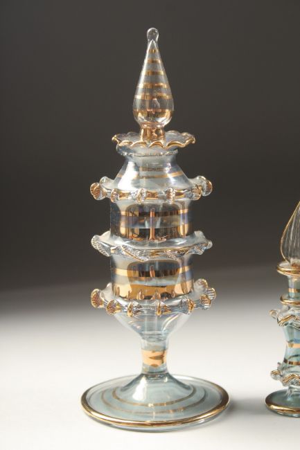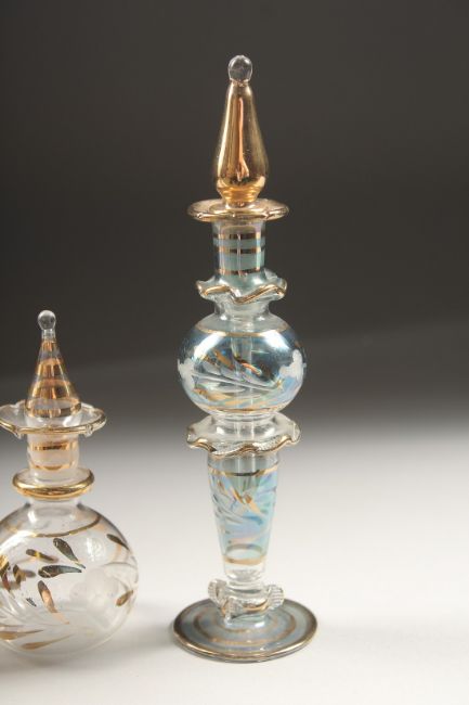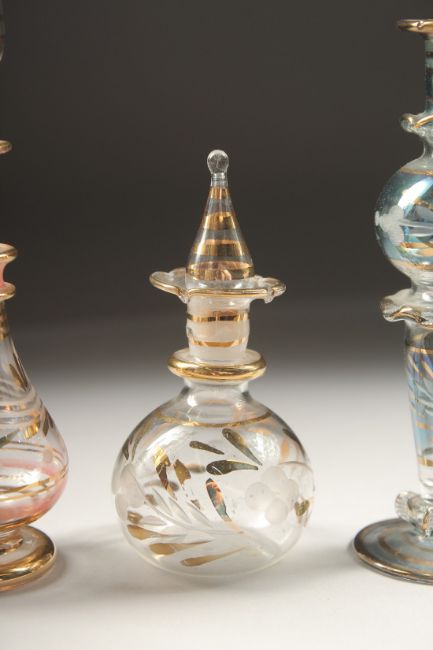 A COLLECTION OF FIVE GLASS PERFUME BOTTLES, possibly Ottoman, (5).