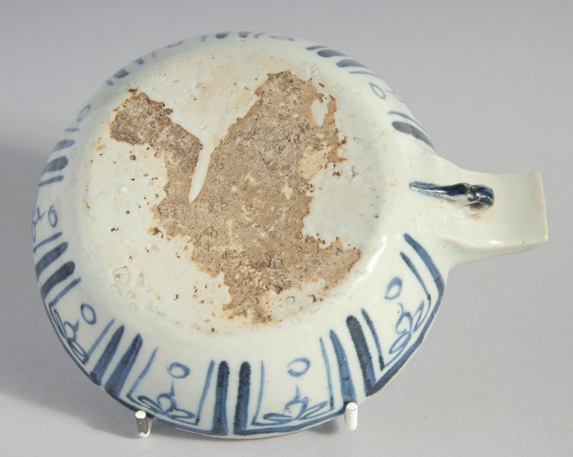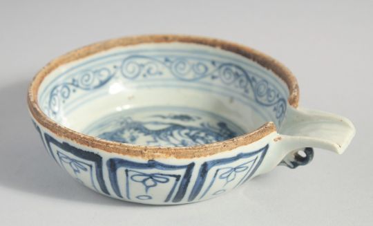 A CHINESE YUAN STYLE BLUE AND WHITE DRAGON BOWL, with spout, 12.5cm diameter (excl. spout).