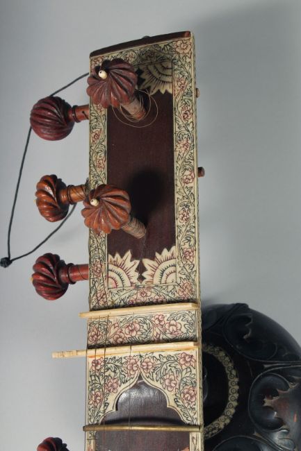 AN INDIAN BONE OVERLAID SITAR, 122cm long.