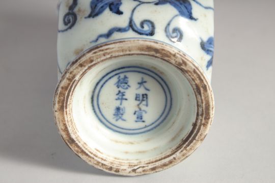 A CHINESE BLUE AND WHITE PORCELAIN TWIN HANDLE VASE, six-character mark to base, 18cm high.