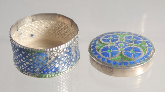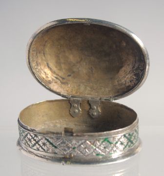 TWO 18TH/19TH CENTURY MUGHAL INDIAN LUCKNOW ENAMELLED SILVER SNUFF BOXES, 6cm wide and 3.5cm, (2).