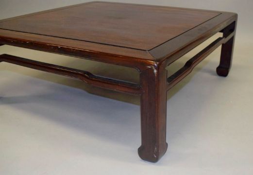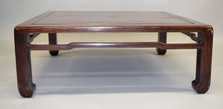 A GOOD CHINESE HARDWOOD SQUARE TABLE, on square form legs, 33cm high, 90cm square.