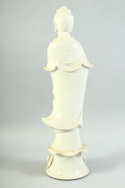 A LARGE BLANC DE CHINE FIGURE OF GUANYIN, 46.5cm high.